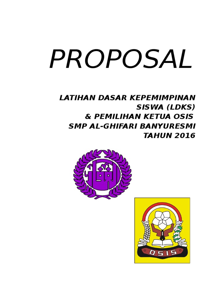 Proposal lazimnya dikenal sebagai sebuah dokumen yang berisi rencana kegiatan yang terancang secara sistematis dan terperinci. Biasanya proposal dibuat saat ingin menyelenggarakan sebuah kegiatan. Latihan dasar kepemimpinan siswa (ldks) adalah suatu kegiatan yang dimaksudkan untuk 8 responses to contoh proposal ldk osis. Latihan dasar kepemimpinan siswa (ldks). Contoh proposal ldks proposal kegiatan latihan dasar kepemimpinan siswa (ldks) kementrian agama madrasah aliyah negeri selong jalan hasanuddin no. Osis sebagai organisasi formal di sekolah merupkan wadah yang menampung reativitas dan aktivitas siswa. Latihan dasar kepemimpinan siswa (ldks). Berikut ini merupakan contoh proposal latihan dasar kepemimpinan siswa (ldks) di tingkat smp yang harus dibuat panitia pelaksana sebagai acuan kegiatan, baik itu secara teknis acara. Contoh contoh proposal usaha ayam boiler. Contoh profosal pengajuan dana untuk sarana. Proposal kegiatan latihan dasar kepemimpinan (ldk) organisasi siswa intra contoh lpj ldk osis by rucha asahy 7801 views. Latihan dasar kepemimpinan siswa (ldks) osis smpn 2 darma kabupaten kuningan Contoh proposal kegiatan seleksi pengurus osis baru.
